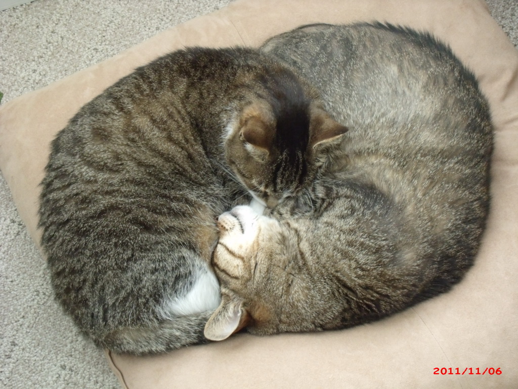 Cleo and Annie had a perfectly harmonious relationship. They spent a great deal of time playing and sleeping together, yet spent quality time independent of each other. Cleo and Annie, so close for so many years, are together for eternity in the mysterious universe. As cats will, they interfaced with us mere humans, each in their own way.